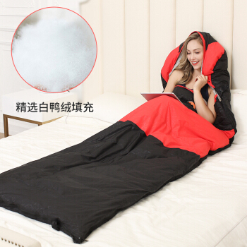 自由の舟駱駝屋外大人キャンプ羽毛保温厚い寝袋秋冬室内軽便アヒル羽毛封筒型隔汚れ寝袋3.3 kg青