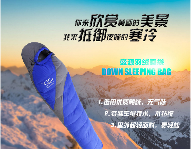 屋外寝袋キャンプミイラ羽毛羽毛布団寝袋は、マイナス20度の厚さで保温したキャンプ寝袋をつなぎ合わせることができます。