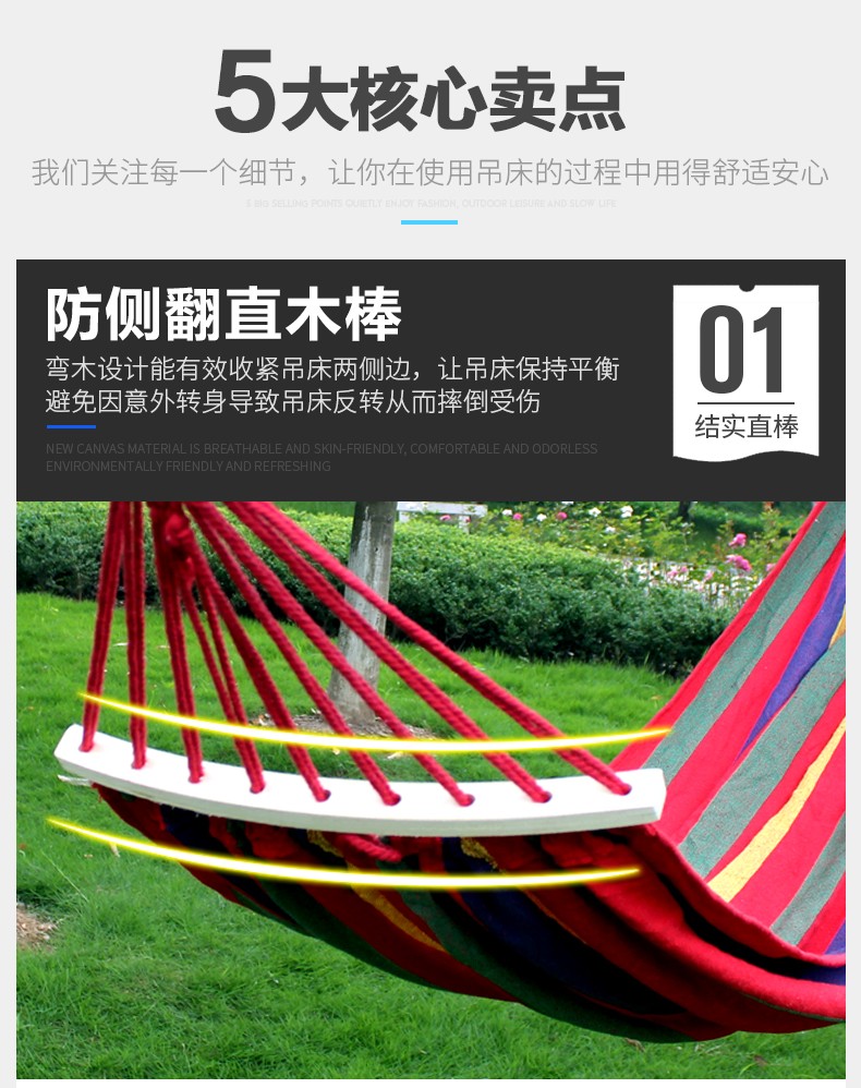 アウトドアキャンバスのハンモシングルは多彩で、学生の室内外ブランコの幅を厚くしました。ハンモック大人の子供はベッドルームを横転します。