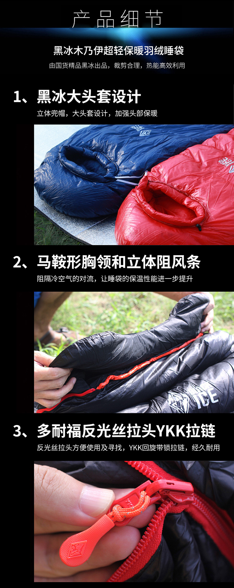 黒氷アップグレードモデルG 200/G 400/G 700/G 1000/G 1300アウトドア成人キャンプミイラビロードキャンプ厚い羽毛布団寝袋ブルーG 1300 Mサイズ-23度