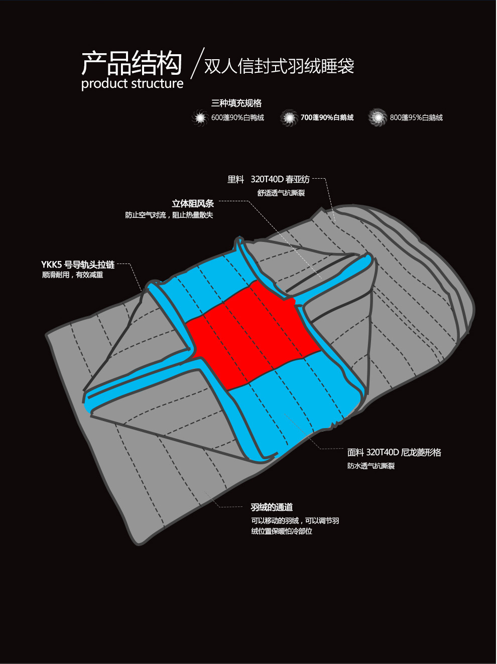 ブラック岩(BlackCrag)并迪莲シリーズアウトドアルームのダブル封筒の羽毛ペア羽毛布団600ポンの白アヒルの絨色の2500グラムの充填量