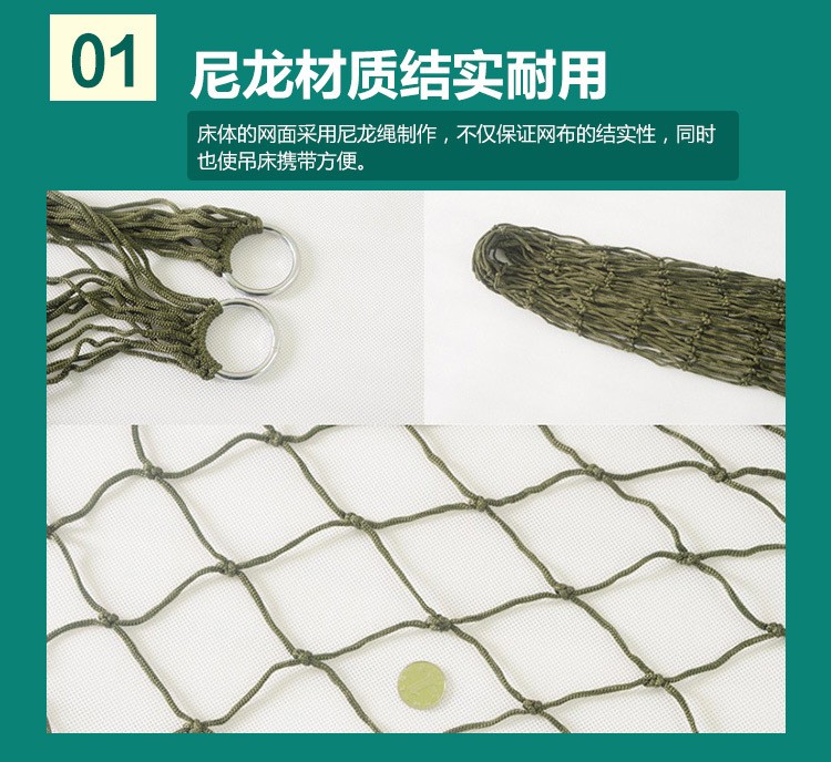 智匯外ハンモク加太軍緑網ハンモクキャンピングカジュアルナイロン縄ベッドブランコシングルブランコ揺籃椅子防側反網ハンモク