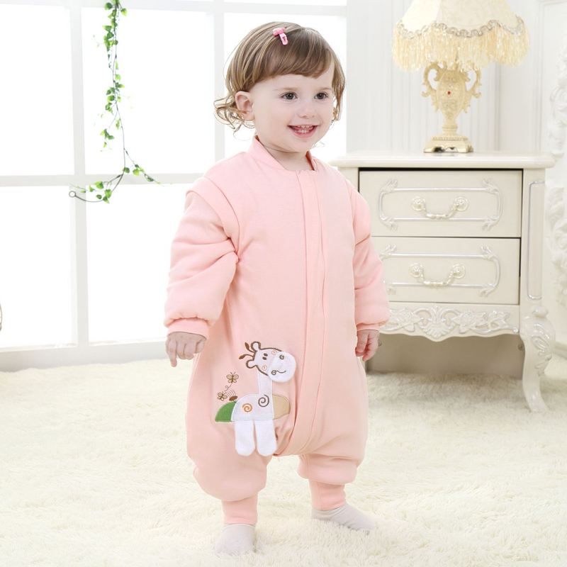 赤ちゃんの寝袋の赤ちゃん春秋季の新型の綿は厚い冬の新入生の子供の足の保温する寝袋が蹴られてピンクの厚い寝袋に袖の100 cmをはずさないことを防ぎます。