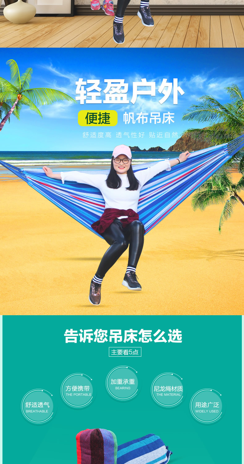 アウトドアハック加幅カジュアルキャンバスブランコ公園室内成人ハンモンモン150 cmレインボー