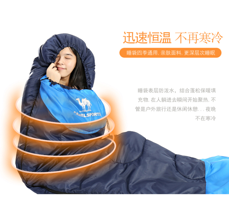 キャメルラクダ屋外寝袋キャンプ屋外成人寝袋超軽量寝袋ディープブルー/カラーブルー(左)1.35 Kg左