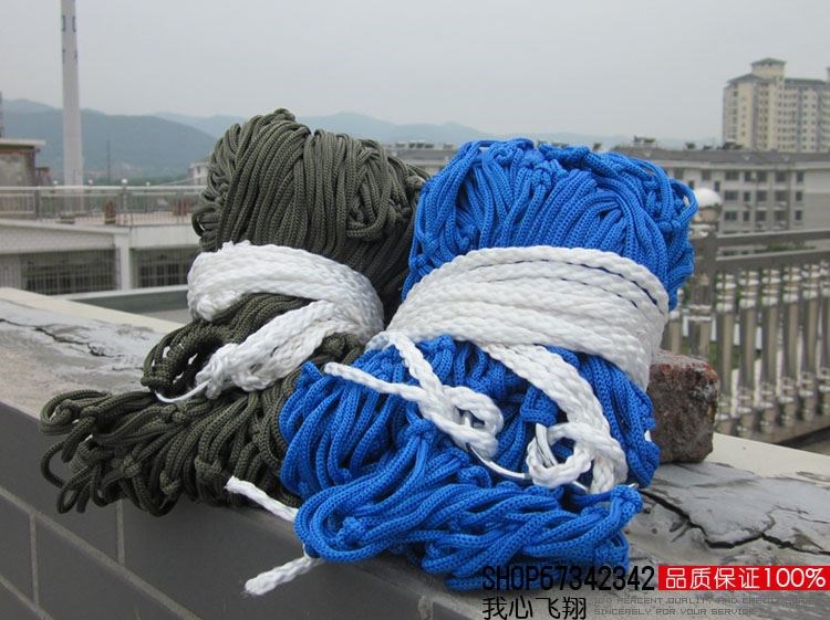成人の屋外レジャーネット大人の足を休めることができます。多機能ブランコに乗ることができます。野外キャンピングネット9本の太いナイロン軍グリーン+縄+布袋を掛けます。