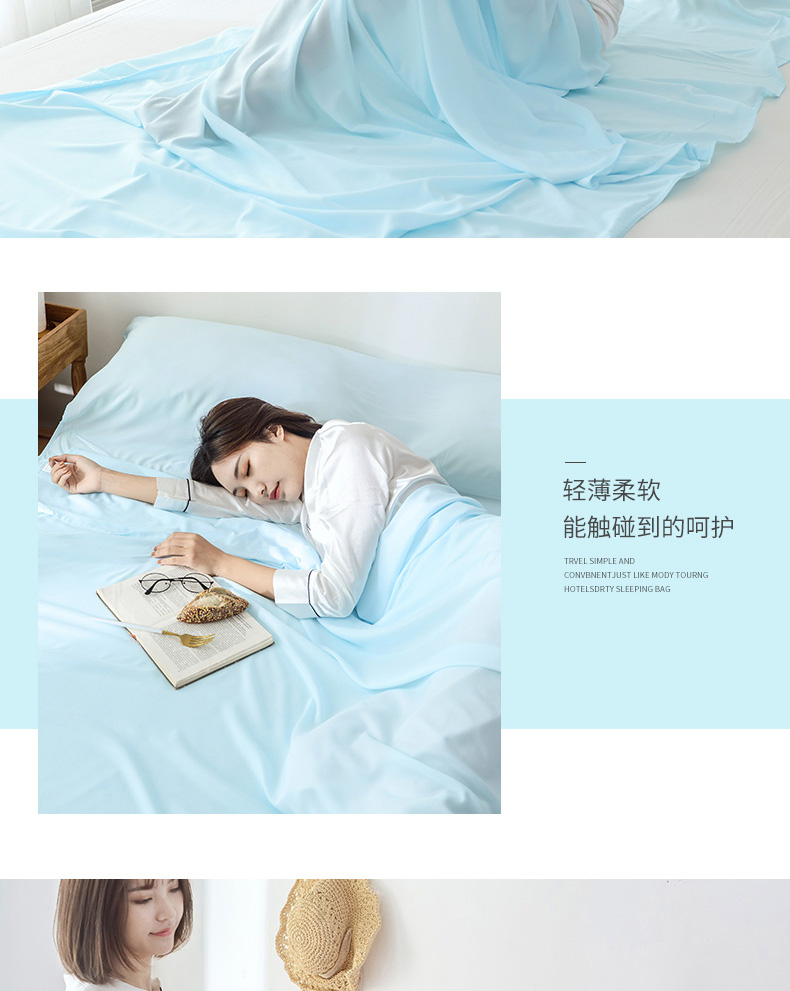 モーディ汚い寝袋旅行ホテルの布団セット携帯ホテルの汚れ防止シーツ成人室内の夏寝袋旅行用品軽薄な空色ブルーファミリーウェア(200*220)