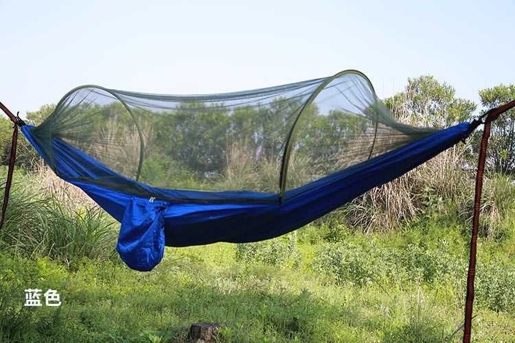 全自動速開蚊帳付ハインモックアウトドア用のナイロン落下傘布キャンプキャンプ蚊除けハーンモック室内ブランコペア揺り椅子子供寝軍緑290*140