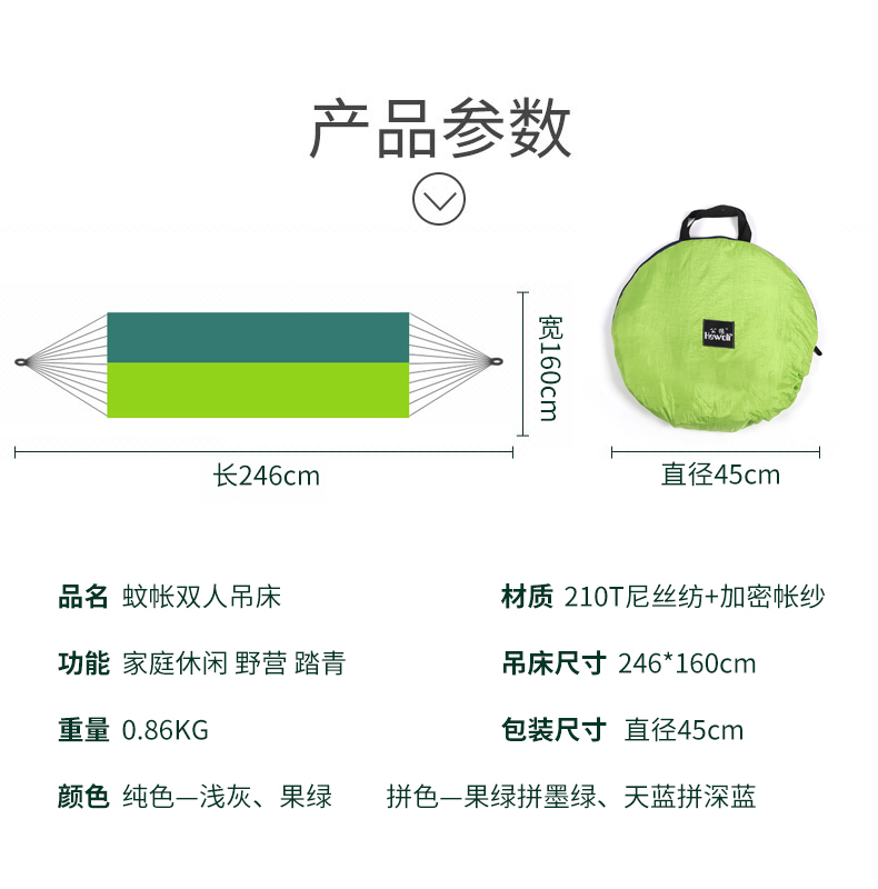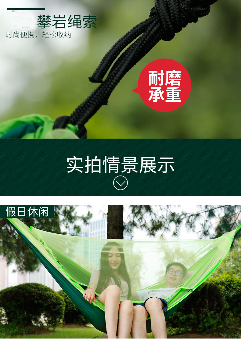 雄狼(Hewolf)戸外蚊帳付きききハンモックシングルペア落下傘布室内寮ブランコ家庭用成人寝軍緑相果緑+ゲートル