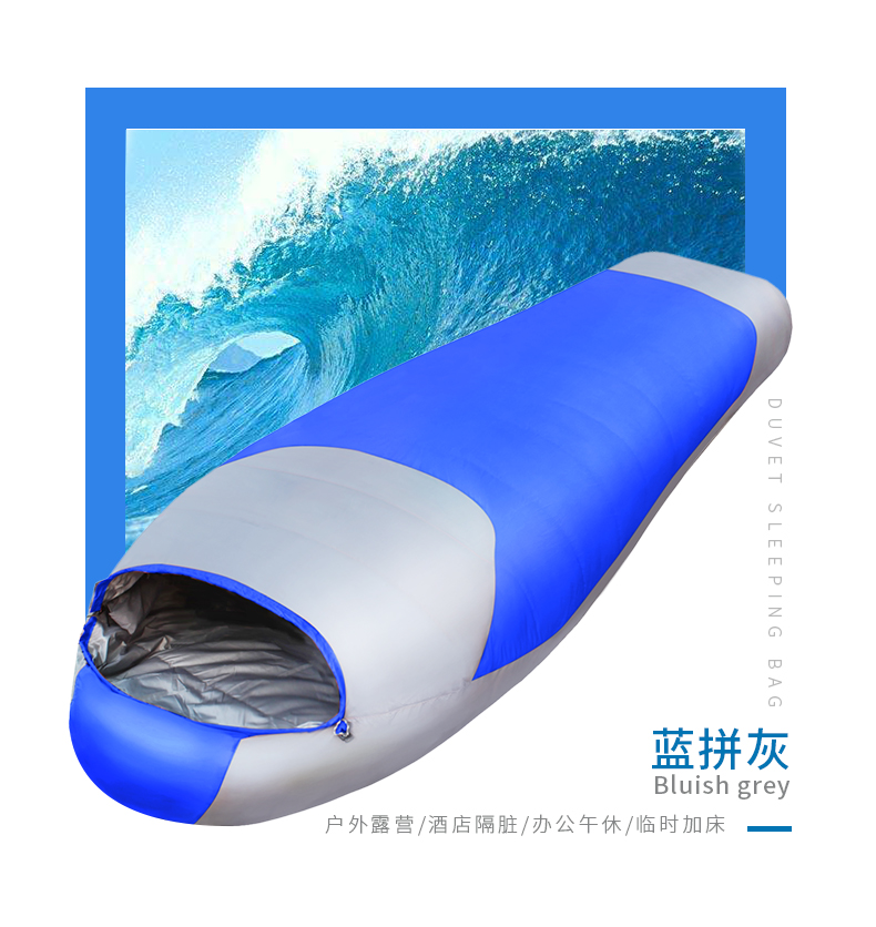 羽毛寝袋大人のアウトドア冬の保温キャンプ迷彩筒型アヒル羽毛室内の汚れを隔てて携帯旅行キャンプ寝袋2600 g封筒の羽毛寝袋。青