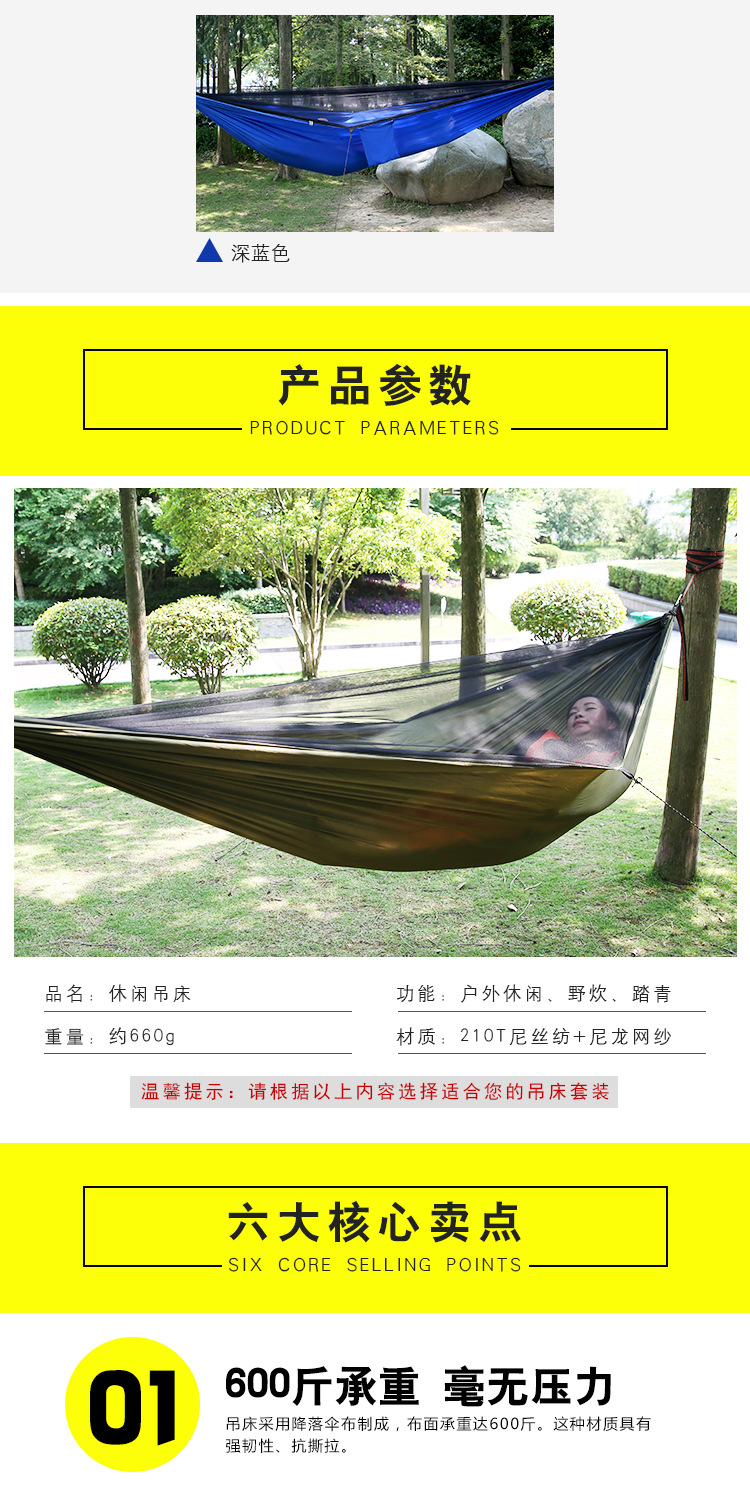 新品アウトドアハック蚊帳付自動速開シングル2人超軽い通気性降下傘防虫キャンプブランコハンムック屋外脱床シングル成人寝袋ハムックテント型290*140高配合ブルー