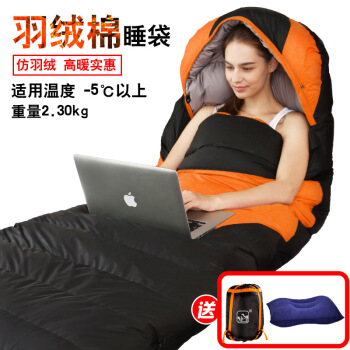 羽毛綿の寝袋大人の夏冬の戸外は厚くて保温します。室内の昼休み寝袋キャンプは2人で汚れた綿の寝袋を挟んで2.6 kgの青色+眼帯をつなぎ合わせます。