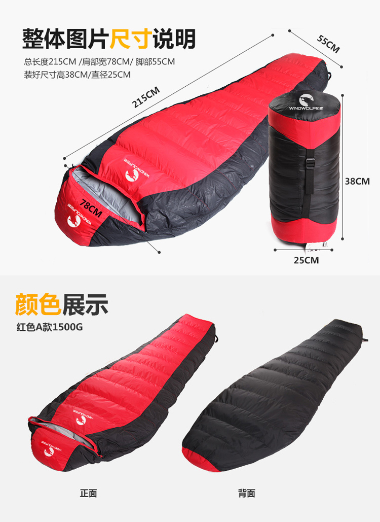 風狼(winddwolf)羽毛布団寝袋大人屋外キャンプ旅行室内の冬の保温性鴨絨シングルは、ダブルマイナス10-20度1500 gの絨色をつなぎ合わせることができます。