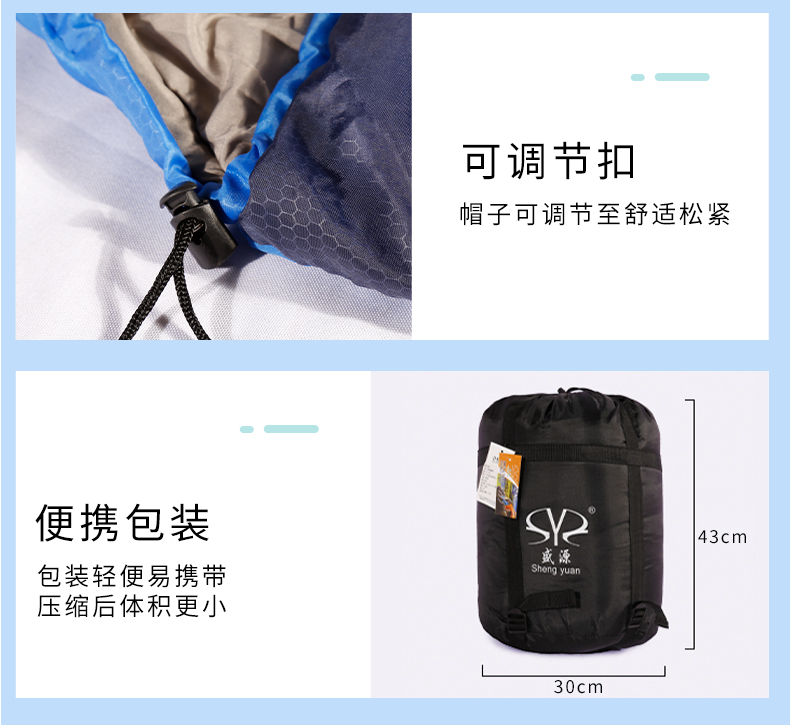 盛源(SHENGYUAN)寝袋大人用アウトドア冬の保温旅行四季キャンプ室内の汚れ防止綿寝袋2.3 KGブルー