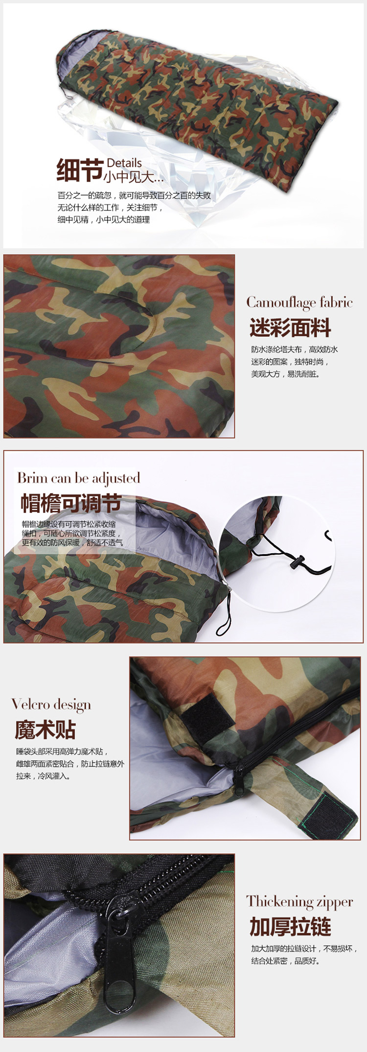尚龍迷彩寝袋帽子付き封筒寝袋中綿昼休み寝具はテントを敷いてカジュアルキャンプができます。