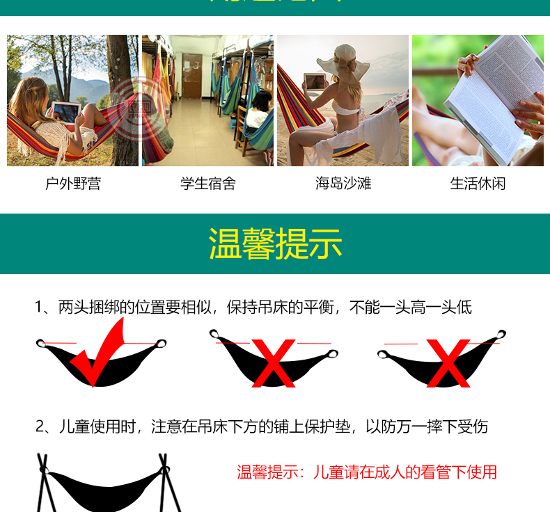 ハーンモック野外キャンピング高承重のシングルペアは、厚手のキャンバス寮の寝室のブランコソフトベットを買って、3人分のブルーグリーンストライプをプレゼントします。